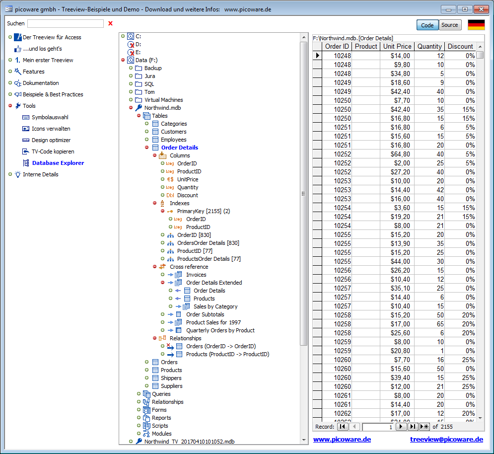 Unsere Kunden erhalten die zugehörige MDB und können den Treeview und alle Beispiele